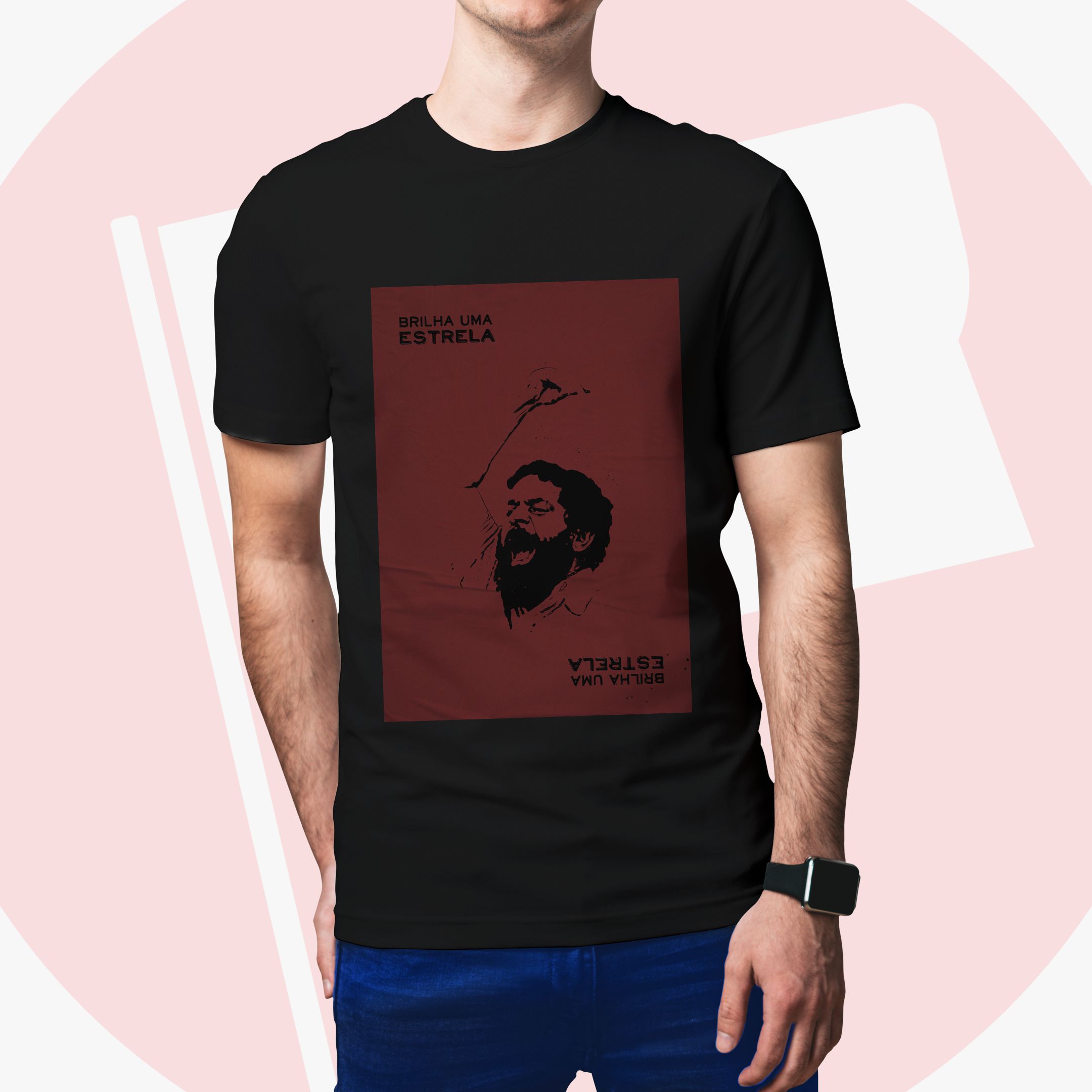 Camiseta Brilha uma estrela, quer trazer de volta aquele brilhos nos olhos dos Brasileiros do ano de 1989, Lula lá, brilha uma estrela/Lula lá, cresce a esperança/Lula lá, o Brasil criança/Na alegria de se abraçar/Lula lá, com sinceridade/Lula lá, com toda a certeza pra você, Lembrou - 100% Algodão, na cor preta, produto local e com muita qualidade no seu acabamento.