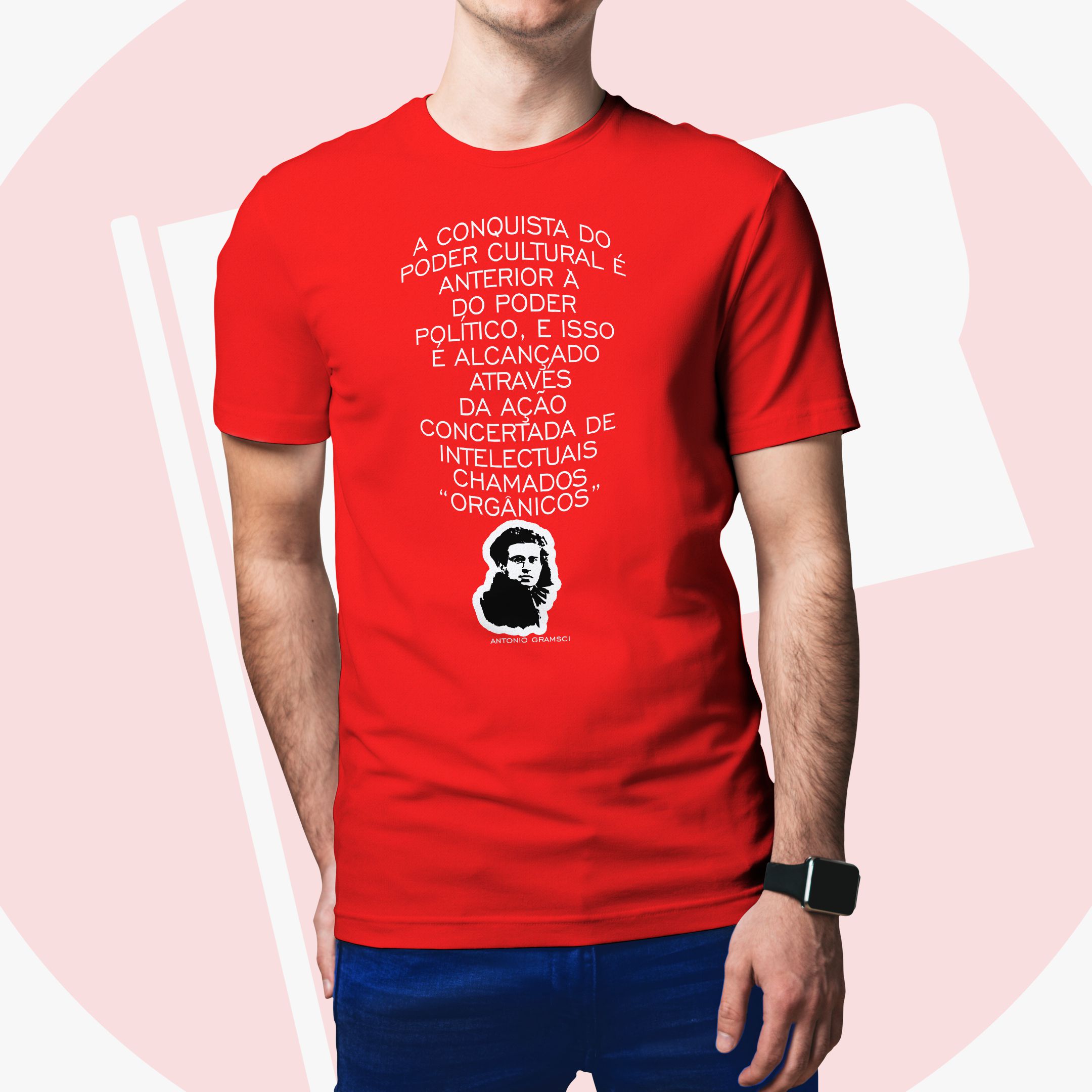 Um dos mais célebres intelectuais, que ainda por cima produziu sua obra sob altíssima repressão, Gramsci nos convida à intelectualidade orgânica. Camiseta na cor vermelha. Produção local, 100% algodão penteado 30/1 de alta qualidade para garantir conforto e resistência em todas as ocasiões.